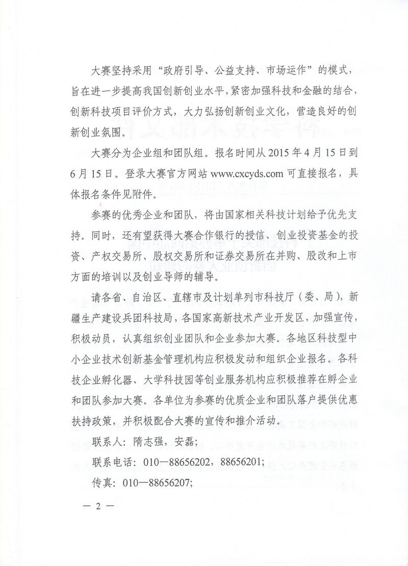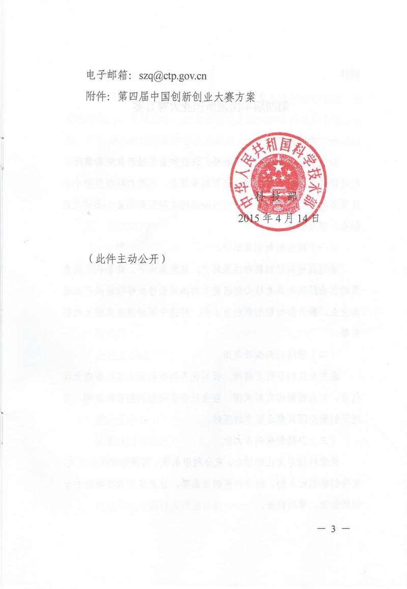 科技部關(guān)于舉辦第四屆中國創(chuàng)新創(chuàng)業(yè)大賽的通知