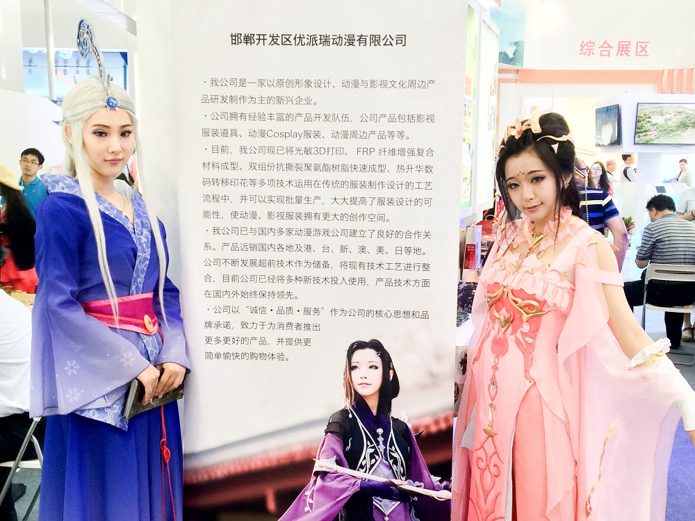 本次展會期間,優(yōu)派瑞展出精美的動漫服飾,將新的技術(shù)成果和嚴(yán)謹(jǐn)?shù)墓ぷ骼砟钤谡箙^(qū)向中外參展人員進(jìn)行了集中展示,完美的呈現(xiàn)了傳統(tǒng)手工藝和動漫文化產(chǎn)品的創(chuàng)新高效結(jié)合。乘著“十三五”文化產(chǎn)業(yè)將成為國民支柱性產(chǎn)業(yè)的東風(fēng),優(yōu)派瑞將依托“文化+科技+金融”的服務(wù)平臺,在“文化引領(lǐng)城市轉(zhuǎn)型發(fā)展”的浪潮中,更好更多的將動漫文化化零為整,作為公眾文化向大眾推出,更好的推廣普及動漫文化,為社會創(chuàng)造更大的價值。