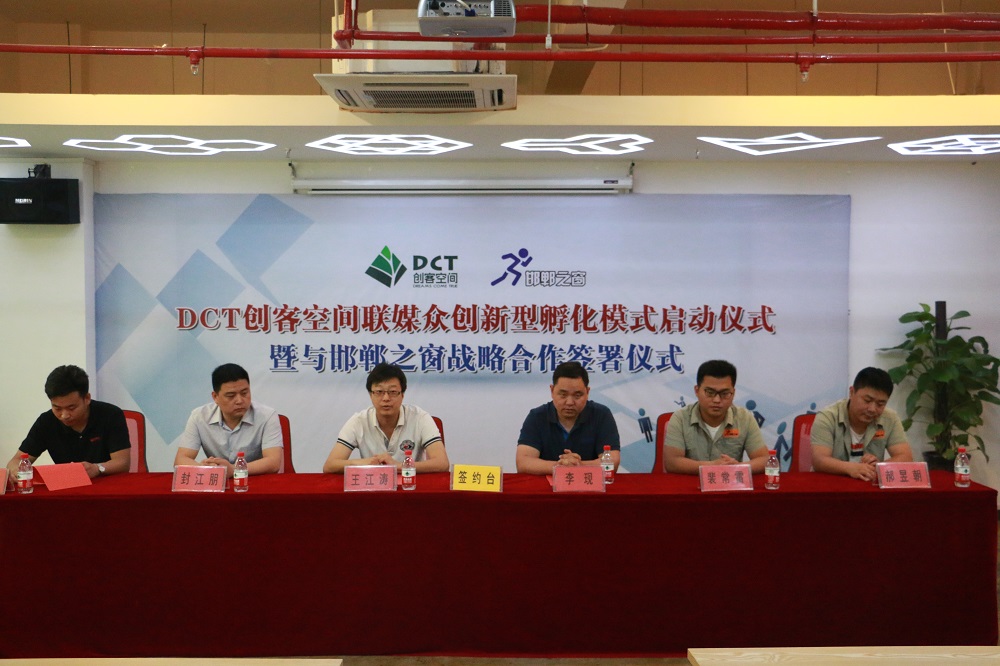 2016年6月3日上午,邯鄲高科DCT創(chuàng)客空間聯(lián)媒眾創(chuàng)新型孵化模式啟動儀式暨與邯鄲之窗戰(zhàn)略合作簽署儀式在DCT創(chuàng)客空間二層會議室圓滿舉行。邯鄲高科董事長王江濤、副總經(jīng)理封江朋、邯鄲之窗總經(jīng)理李現(xiàn)、運營總監(jiān)裴常雷及相關(guān)人員出席了簽約儀式。