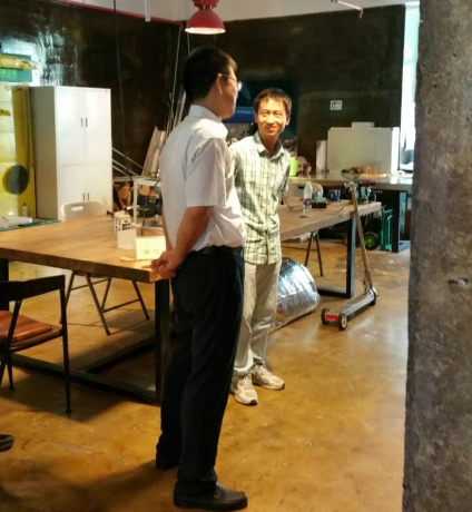接下來(lái)參觀了“90后創(chuàng)客劉詠名”自主研發(fā)的極簡(jiǎn)電動(dòng)滑板車(chē),劉詠名向喬主任介紹了產(chǎn)品的優(yōu)勢(shì)并正在積極申請(qǐng)專(zhuān)利,同時(shí)表示自己在DCT創(chuàng)客空間內(nèi),享受到了很全面的孵化服務(wù),并對(duì)未來(lái)的發(fā)展非常憧憬。喬主任表示非常欣慰,同時(shí)也提出了中肯的意見(jiàn),希望劉詠名可以再接再厲,創(chuàng)造更高的輝煌。