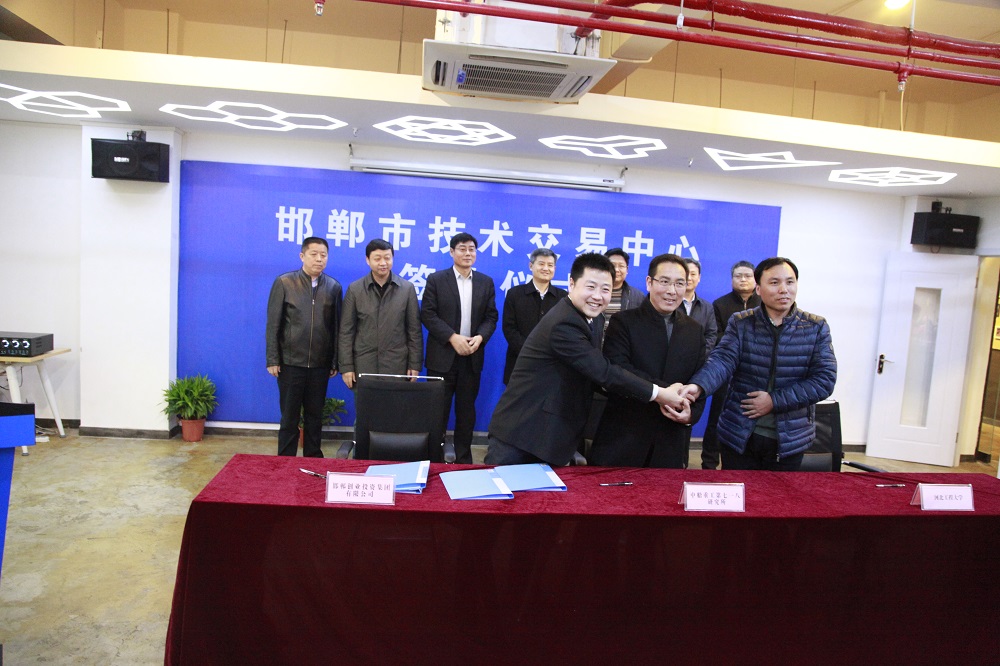 2016年12月23日下午,邯鄲創(chuàng)業(yè)投資集團(tuán)有限公司與河北工程大學(xué)、中船重工第七一八研究所在DCT創(chuàng)客空間會(huì)議室就邯鄲市技術(shù)交易中心合作事宜正式簽訂了戰(zhàn)略合作協(xié)議。邯鄲市政府黨組成員王建明、市政府副秘書(shū)長(zhǎng)丁向平、邯鄲經(jīng)濟(jì)技術(shù)開(kāi)發(fā)區(qū)管委會(huì)副主任楊獻(xiàn)仲、投資促進(jìn)局劉鎰南、邯鄲市科技局局長(zhǎng)申陸峰、副局長(zhǎng)朱春雷、中船重工第七一八所研究院所長(zhǎng)李俊華、副所長(zhǎng)王少波、河北工程大學(xué)副校長(zhǎng)郭鴻湧出席了簽約儀式。