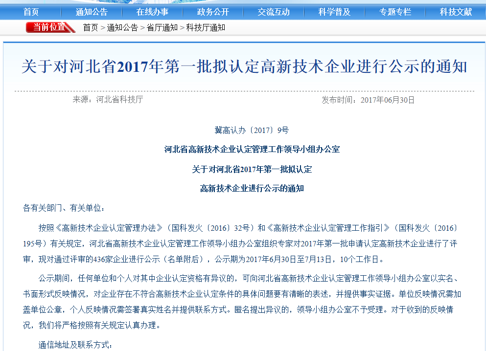 近日,河北省科技廳公示了2017年批擬認定高新技術(shù)企業(yè),園區(qū)企業(yè)河北中創(chuàng)廣電科技有限公司榮登榜單。