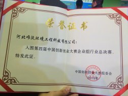 第四屆中國(guó)創(chuàng)新創(chuàng)業(yè)大賽新能源及節(jié)能環(huán)保行業(yè)總決賽在西安落下帷幕,邯鄲高科在孵企業(yè)河北唯沃環(huán)境工程科技有限公司以河北分賽區(qū)第二名參加了總決賽,晉級(jí)總決賽優(yōu)秀獎(jiǎng),并獲得了現(xiàn)